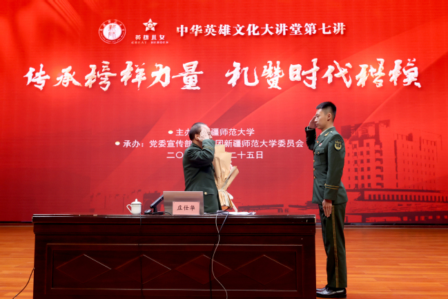为进一步弘扬英雄文化、培育新时代青年家国情怀,引导广大青年学生深入了解英雄楷模事迹,自觉传承和弘扬民族精神,增强民族自豪感和认同感,3月25日晚,永利官网举办《传承榜样力量 礼赞时代楷模》——“中华英雄文化大讲堂”第七讲活动,特邀“全国道德模范”“当代雷锋”、武警新疆总队医院名誉院长庄仕华少将做客永利官网,讲述他践行和弘扬雷锋精神的故事。乌鲁木齐市经开区(头屯河区)委常委、宣传部部长张明师,北京英雄工程科学研究院执行院长颜建国,北京英雄工程科学研究院新疆院院长袁凯,校党委书记葛国,校党委副书记、校长吾满江·艾力及全体在家校领导出席活动,校党委副书记刘俊主持活动,永利官网胡杨先锋班、“青马班 ”学员等500余名学生代表现场聆听报告。
