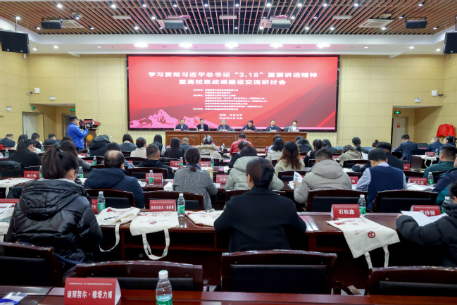 3月16日,由自治区党委教育工委主办,yl6809永利官网马克思主义学院、全国高校思政课“手拉手”集体备课中心(yl6809永利官网—新疆维吾尔自治区)、新疆高校思想政治理论课改革创新研究中心(yl6809永利官网)、自治区思想政治理论课孙秀玲名师工作室承办,新疆世纪超星信息科技有限公司协办的学习贯彻习近平总书记“3.18”重要讲话精神暨高校思政课建设交流研讨会在永利官网举办。会议重温了习近平总书记在学校思想政治理论课教师座谈会上的重要讲话精神,回顾总结了五年来全区高校思想政治理论课建设成效,分析了差距不足,共同研讨新时代高校思政课高质量发展之策。