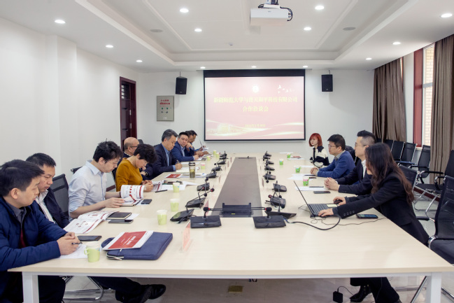 3月18日上午,中国电子科技集团普天和平科技有限公司技术总监钱庆一行来我校洽谈校企合作。校党委副书记、校长吾满江·艾力,校党委常委、副校长王世杰,校党委常委、副校长季荣以及相关学院、职能部门负责人参加座谈。会议由校党委常委、副校长王世杰主持。