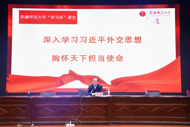 开班仪式结束后,刘俊以《学习习近平外交思想,胸怀天下担当使命》为题,为学员带来开班第一课。刘俊从学习习近平外交思想的核心要义、世界百年未有之大变局的挑战和机遇、青年马克思主义者的历史使命与责任担当三个方面为广大学员深入浅出地阐释了习近平外交思想的发展脉络与精髓要义,教育广大学员深入学习理解习近平外交思想,做马克思主义的坚定学习者、传播者、践行者。