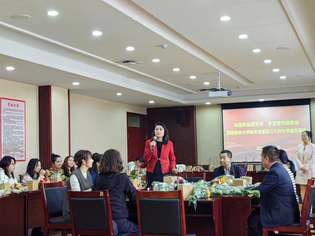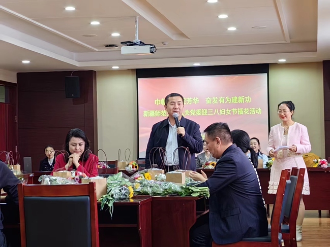 为激励机关女干部立足岗位为学校发展作出更大贡献,更好展现机关女干部的精神风貌,3月6日下午,在“三八”国际劳动妇女节来临之际,机关党委开展了“巾帼风采绽芳华,奋发有为建新功”主题插花活动。校党委书记葛国,校党委常委、副校长帕力旦·吐尔逊,校党委常委、组织部部长胡毅涛出席活动,为机关女干部们带来节日问候。