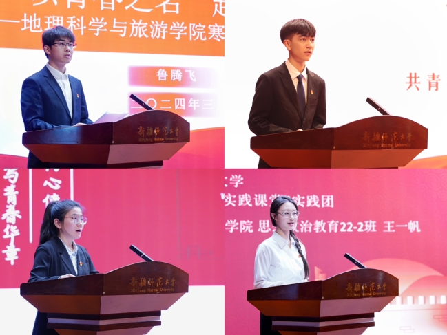 会上,陆娇介绍了学校2023年度社会实践活动开展情况。张进宣读了学校2023年度社会实践表彰决定。经验交流分享环节,地理科学与旅游学院、中国语言文学学院作为优秀组织单位获奖代表发言;红色教育实践团学生代表王一帆,“石榴花开”社会实践团学生代表艾力扎提·艾斯米提拉作为优秀实践团队依次进行分享汇报。