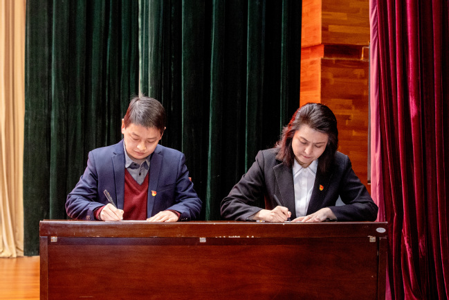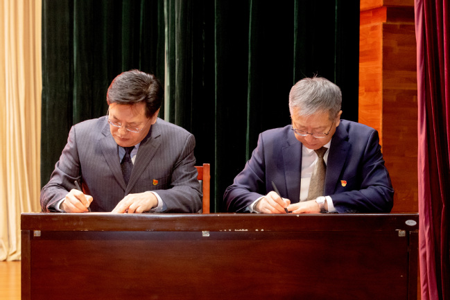 校党委书记葛国与校党委常委、宣传部部长高靖签订安全稳定责任书