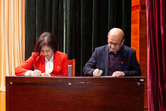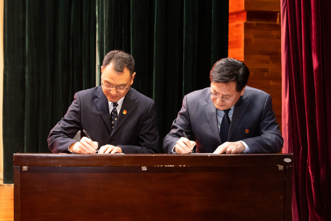 校党委副书记、校长吾满江·艾力与校党委常委、副校长帕提曼·吐尔逊签订安全生产责任书