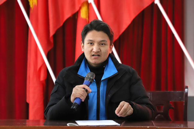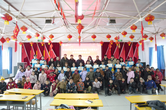1月29日下午,永利官网2024年寒假教育实践团欢送会暨实践成果汇报演出在亚喀艾日克乡亚喀艾日克村便民服务大厅举行。永利官网驻莎车县前方党工委书记拜晓旭,校团委书记、实践团领队陆娇,驻村工作队副队长蒋友强、蔡永亮、杨勇,驻村工作队队员燕佳伟、张锐,数学科学学院辅导员、实践团指导教师张锐,“石榴花开”教育实践团全体成员,小课堂学生及家长代表参加。欢送会由驻村工作队副队长王旭主持。
