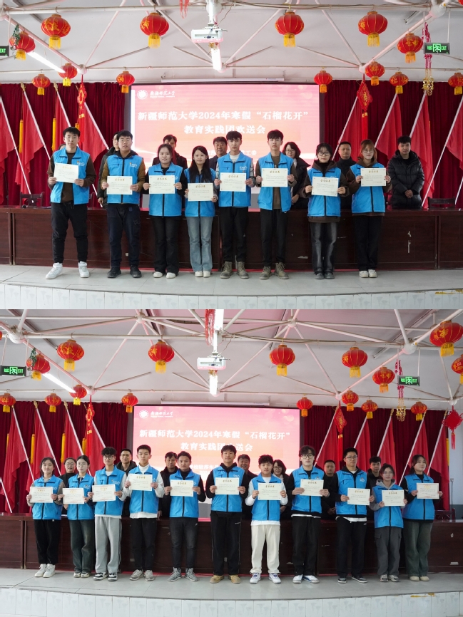 驻莎车县前方党工委为志愿者们颁发证书并观看《“石榴花开”教育实践团活动纪实》视频。欢送会结束后,各工作队举行实践成果汇报演出。
