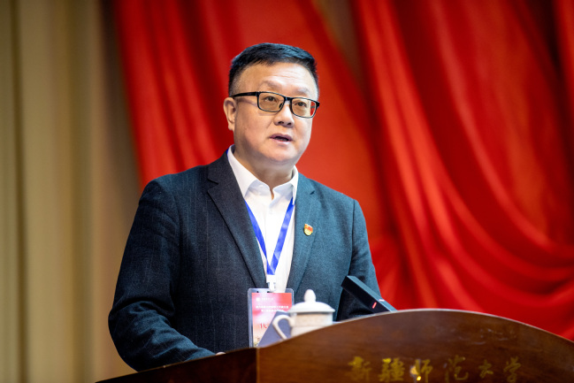 校党委副书记、校长吾满江·艾力作学校工作报告