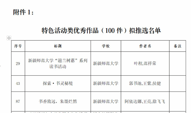 “优秀特色活动奖”公示