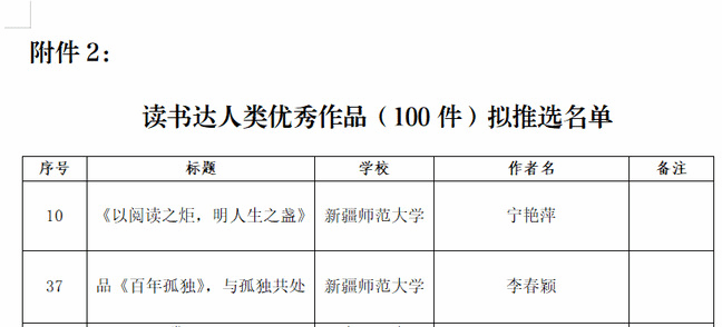 “读书达人奖”公示