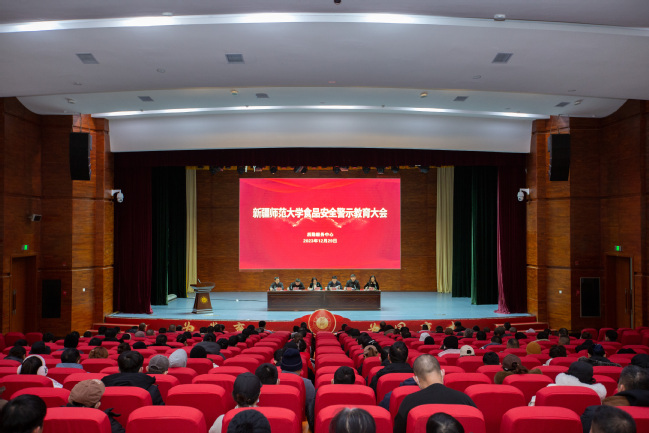 2023年12月29日,永利官网食品安全警示教育大会在温泉校区昆仑讲堂召开。校党委常委、副校长帕提曼·吐尔逊出席会议并讲话,自治区市场监督管理局执法稽查局局长张云松、自治区市场监督管理局食品经营安全监管处负责人杨刚到会指导。会议由学校后勤服务中心党委副书记、主任吕军主持。