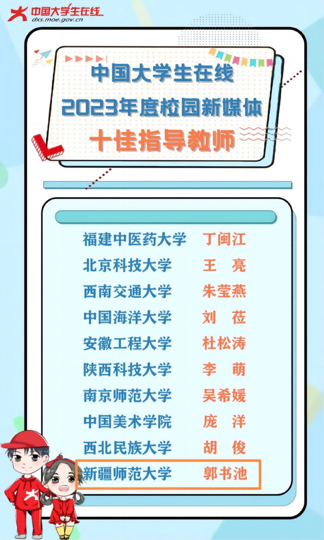 “校园新媒体十佳指导教师”(全国共10名教师获得)