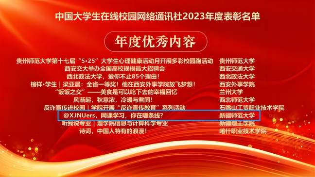12月14日至15日,教育部中国大学生在线先后公布了2023年度校网通及校园行活动表彰名单、2023年度校园新媒体表彰名单,永利官网斩获“优秀校园网络通讯站”等7项荣誉,其中获评2023年度“校园新媒体融合共建四十强”,学生工作部(处)郭书池获评“校园行杰出指导教师”、“校园新媒体十佳指导老师”,此项称号为永利官网首次获得,是永利官网继2022年入围互动百强到融合共建四十强、从创新应用奖到十佳指导教师奖的一次重大突破。