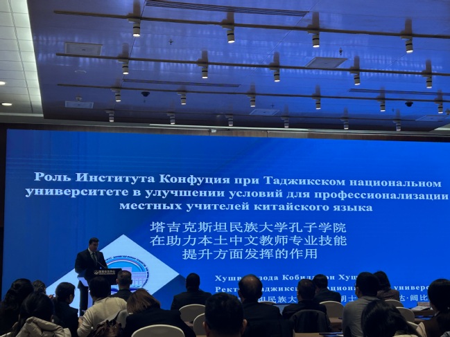 塔吉克斯坦民族大学校长在分论坛上介绍塔吉克斯坦民族大学孔子学院