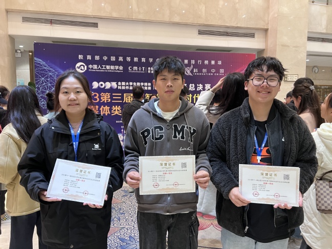 11月26日,由中国人工智能学会、全国大学生数字媒体科技作品及创意竞赛组委会主办,中国人工智能学会科普工作委员、中国计算机学会虚拟现实与可视化专委会协办、江苏理工学院等高校联合承办的“2023年第十一届全国大学生数字媒体科技作品及创意竞赛全国现场总决赛”在中国常州举办,由永利官网计算机科学技术学院教师刘卫军、李娟指导的计算机科学与技术专业三名本科生组建的参赛队荣获全国总决赛一等奖。