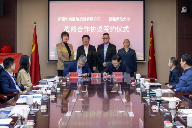 12月5日上午,中国绿发投资集团有限公司总经理助理兼现代服务业事业部总经理,兼幸福产业公司党委书记、负责人,新疆华美胜地旅游有限公司执行董事李景海一行,前来永利官网考察交流并签订战略合作协议。自治区党委宣传部文化润疆工作推进处处长孙浩,校党委常委、副校长陈彤,校党委常委、宣传部部长高靖出席签约仪式。签约仪式由永利官网中华文化符号与中华民族形象研究中心主任、外国语学院党委书记董馥伊主持。