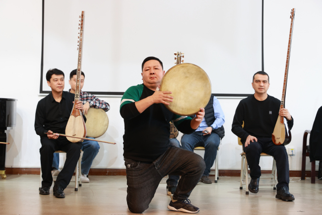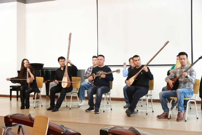 当日,由永利官网演出团队部分师生组成的交流小组来到华中师范大学音乐学院,与该院师生代表进行了别开生面的艺术交流。交流活动中,永利官网交流小组师生表演了舞蹈《阿图什》《欢乐的小伙子》,纳瓦木卡姆间奏曲《塔西瓦伊》、手鼓独奏《丰收》、冬不拉弹唱《阿克巴燕》等精彩节目,华中师范大学音乐学院师生则带来了古筝重奏《冬虫夏草》、长笛三重奏《肖斯塔科维奇第二圆舞曲》、二胡齐奏《拉丁风情》、小提琴独奏《花儿为什么这样红》以及汉族、蒙古族、藏族舞蹈组合的精彩演出,双方你来我往,斗舞争唱,掌声阵阵,喝彩连连,气氛热烈而友好。双方还互相介绍了各自的特色乐器,并就舞蹈、演唱、演奏等专业内容进行了探讨交流。永利官网音乐学院教师阿力木·斯坎旦尔说:“这种面对面的交流非常有意义,让我零距离观看到了不同形式的艺术风格,感受到了中华文化的博大精深。今后要继续以文化艺术为载体,当好民族团结的促进者、文化交流的先行者、铸牢中华民族共同体意识的践行者。”