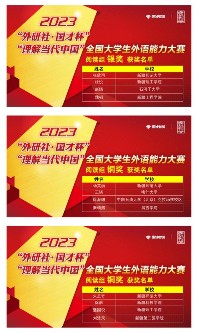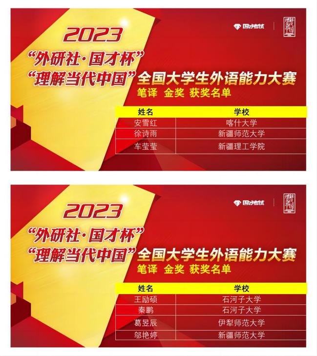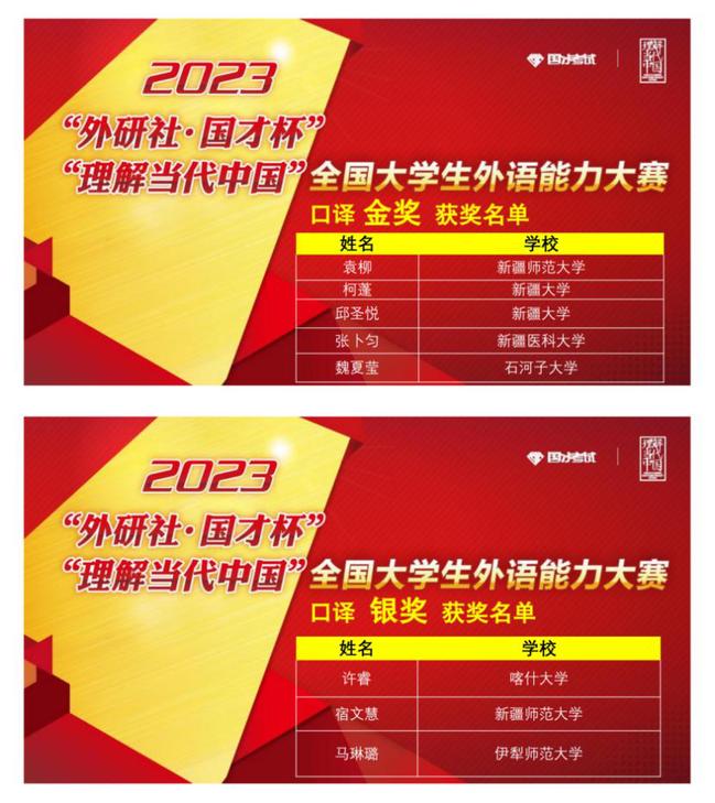 11月4日,由新疆维吾尔自治区教育厅主办,新疆高校外语教学研究会、外语教学与研究出版社协办,喀什大学承办的2023年“外研社·国才杯”“理解当代中国”全国大学生外语能力大赛新疆赛区复赛成功举办。永利官网学生在英语组演讲、写作、阅读、口译、笔译、多语种组比赛中均获得优异成绩。