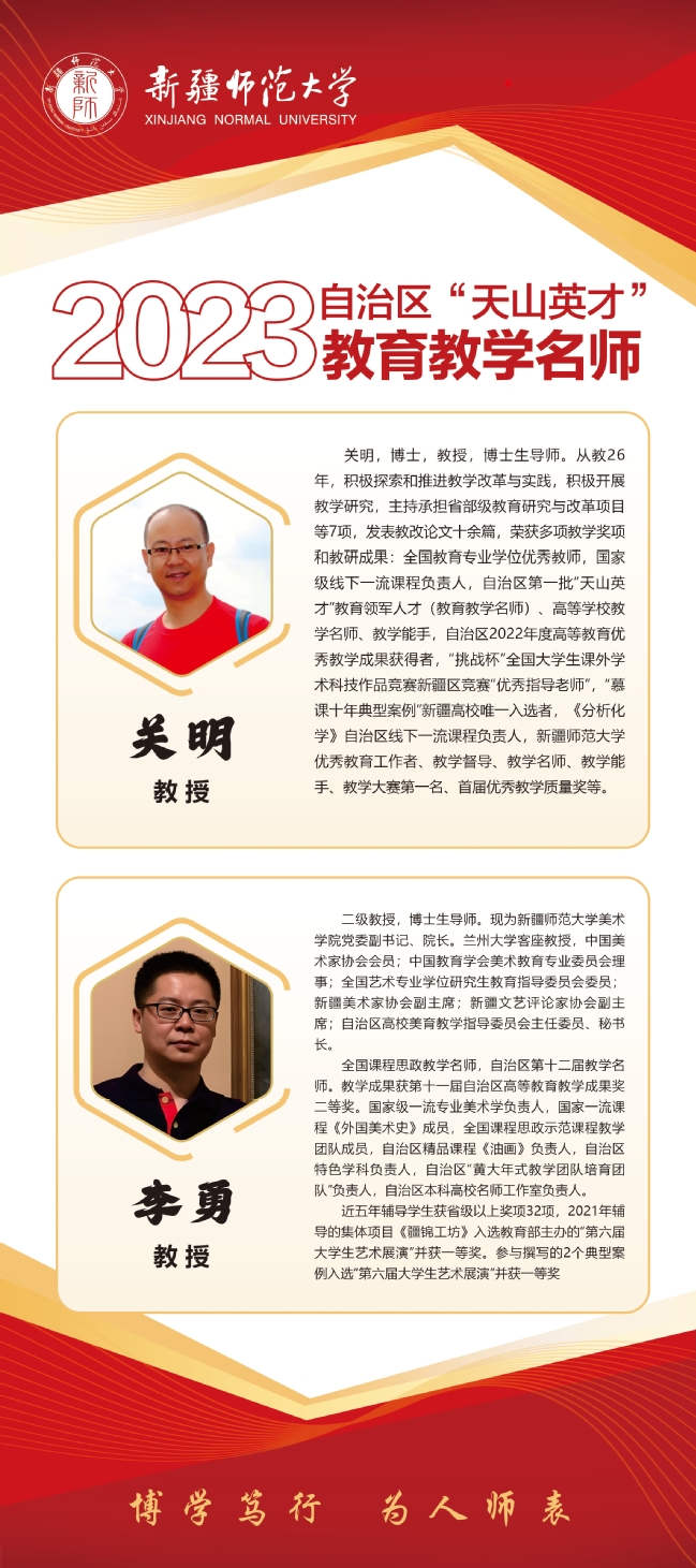 永利官网教师秉持求是创新的躬耕态度,勇于革新、主动应变、大胆探索、追求卓越,在各类教学比赛和教学研究中国中成绩斐然。在第三届全国高校教师教学创新大赛中,获得国家二等奖1项、三等奖1项,自治区一等奖2项、二等奖5项、三等奖6项;在第六届全国高校青年教师教学竞赛中,获得国家二等奖1项、三等奖1项,自治区一等奖2项、二等奖2项、三等奖1项,在教师教学竞赛领域取得突破。2023年,永利官网2名教师获得自治区“天山英才”教育教学名师称号;4名教师获得校级教学名师称号、6名教师获得校级教学能手称号;评选出校级教学成果19项,其中一等奖3项、二等奖6项、三等奖10项。