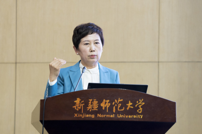 孙秀玲作了题为《深刻把握习近平文化思想推进文化润疆》的报告,从三个维度阐释和分析文化润疆工作。她强调,文化润疆工作要坚持系统思维,注重引领思想、抵达心灵、凝聚力量、坚持底线思维,增强忧患意识,提高对意识形态领域的风险的研判与处理,切实解决各种深层次矛盾和问题,努力实现新疆社会稳定和长治久安。