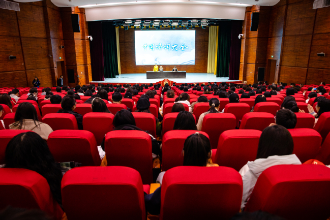 面试选拔结束后,央视导演和出题专家为各参赛单位领队、参赛选手及陪同人员,以及永利官网中国语言文学学院的诗词爱好者们详细讲解了“中国诗词大会”节目8年的前进与变革、赛制与情怀,同时对如何将“爱诗”之心作为人生精进的常态做了分享和辅导。三百余名学子现场聆听,台上台下互动交流,妙句连珠,气氛热烈。