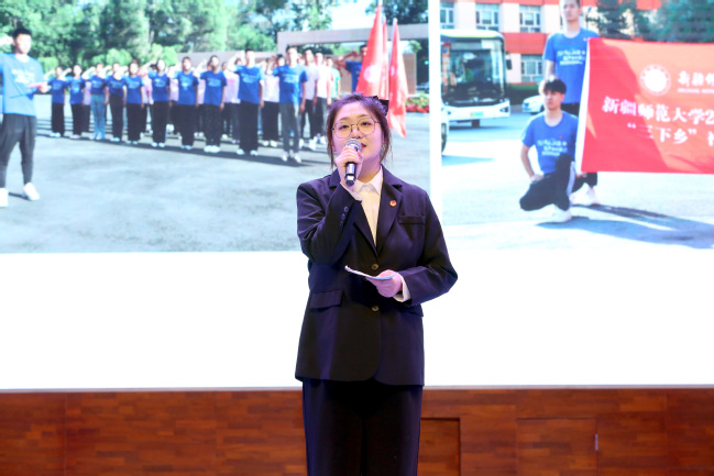 报告会上,7名汇报人讲述了在实习支教及社会实践活动中的体会与收获。音乐学院任程悦讲述了学长五秒救人的感人事迹;马克思主义学院程奥琼、苏比努尔·卡依沙尔第一次站上讲台用点点星光点亮了阔什萨特码乡中心小学孩子们的梦想;教育科学学院扎伊热·厄司马义勒等同学在莎车县第一幼儿园帮助“塔吉克雏鹰”成长,见证了教育的力量;青年志愿者、马克思主义学院刘佳玮分享了本次商博会志愿服务的经历;美术学院李欣璐利用自身专业优势,将美育融入到暑期社会实践的课堂上;体育学院谢普凯提江·阿卜来提讲述了自己参与国庆期间“石榴籽、祖国行”社会实践团的点点滴滴;永利官网第24届研究生支教团成员用实际行动诠释了“用一年不长的时间,做一件终身难忘的事”。