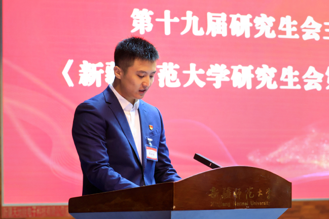第十九届研究生会主席团成员安子牛向大会作工作报告