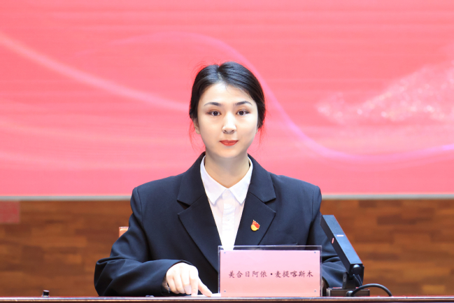 自治区学联驻会主席美合日阿依·麦提喀斯木宣读批复