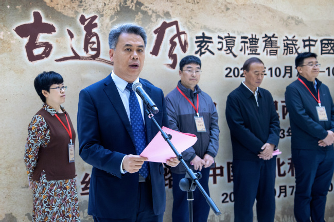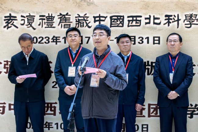 在大会开幕式上,同时举行了“古道西风——袁复礼旧藏中国西北科学考查团摄影集萃”展览开幕式、黄文弼“三记两集”再版首发式与赠书仪式。西北科考团研究会副会长、袁复礼外孙刘卫东,西北科考团研究会会长、黄文弼哲孙黄纪苏分别致辞。