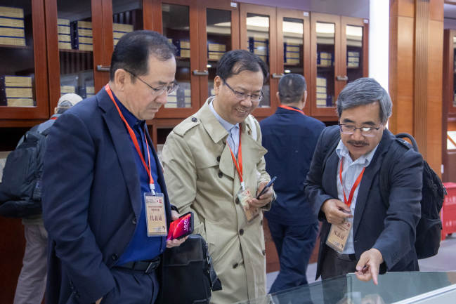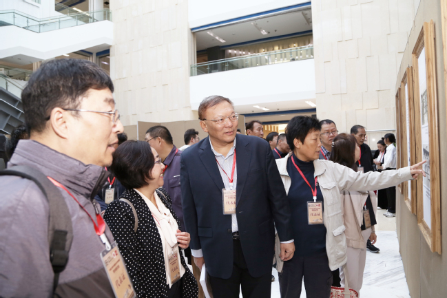 与会专家学者参观“古道西风——袁复礼旧藏中国西北科学考查团摄影集萃”展览