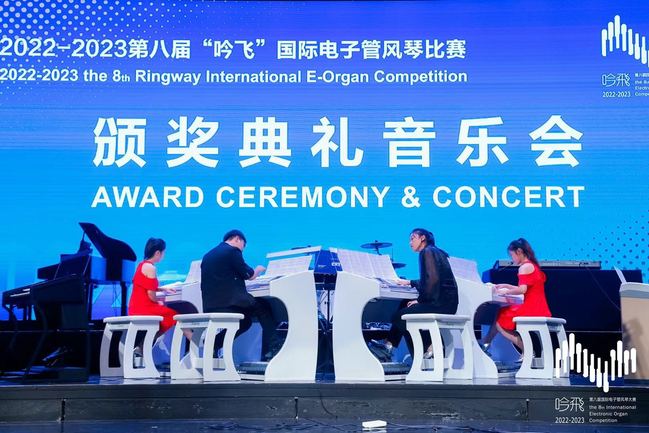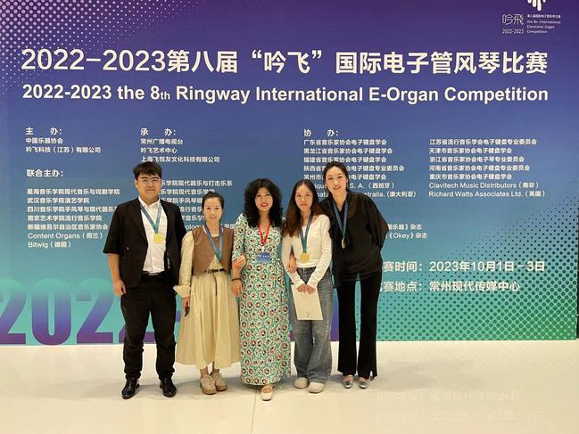 近日,第八届“吟飞”国际电子管风琴总决赛在江苏常州现代传媒中心举行。经过三天的激烈角逐,yl6809永利官网音乐学院2020级艺术硕士袁丽萍,2023级艺术硕士付羽菲、张晓洮,音乐表演20-5班苟新利、22-6班胡晓蕾,从来自全国的四百多名选手中脱颖而出,分别荣获成人重奏组一等奖、最佳中国作品演奏奖以及独奏成人C组二等奖、三等奖的好成绩。同时,受组委会邀请代表获奖选手在颁奖音乐会上演奏《在希望的田野上》。