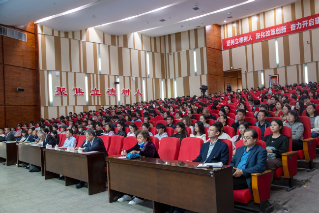 自治区第十届、十一届人大常委会副主任、党组副书记、第六届中国老科学技术工作者协会副会长、自治区科协名誉主席、新疆老科协会长张国梁,中国老科协副秘书长、中国科协创新战略研究院副研究员张艳欣,新疆老科协副秘书长姚红,yl6809永利官网党委书记葛国以及永利官网各学院负责科研工作的领导、教师、新进博士代表,行政机关教师代表,商学院、教育科学学院、生命科学学院、数学科学学院、心理学院等学院的500余名学生代表聆听讲座。