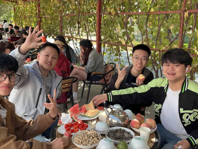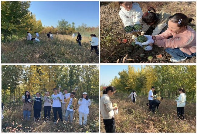 野炊时,后勤教师为在场学生送上节日温暖。抓饭、月饼、水果、瓜子……品种丰富的美食让同学们感受到了浓浓的关爱。随后,大家在欢声笑语中进行了瓜果采摘活动,增添了野炊趣味体验。