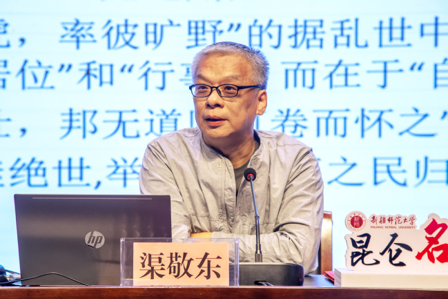 随后,渠敬东教授做了题为《隐逸的社会学:士人的山林》的精彩讲座。渠敬东教授从专业的角度讲解了政统和道统的含义,并指出二者是由中国文明构成的双重体系,山林则是承载道统的文化精神根基,它将一种恒久的精神力和神圣性注入人的心灵之中。而山林文化系统则形成于魏晋隋唐时期,创造性地将孔子思想中的隐逸观与老庄哲学中的自然观结合起来。自此,中国文明进入了一个以诗文书画为载体而传承、守持和弘扬道统的时代。在中国历史文化的发展过程中,山林文化系统始终与人世间、王朝政治以及天下图景保持多重和多形态的互动。