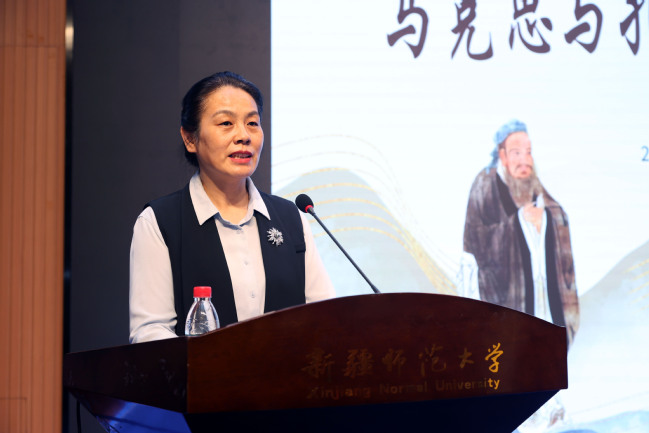 9月22日,永利官网图书馆协同新疆维吾尔自治区图书馆,邀请山东大学哲学与社会发展学院教授、博士生导师何中华作题为“马克思与孔夫子”的学术讲座。校党委常委、副校长帕力旦·吐尔逊、新疆维吾尔自治区图书馆馆长王曙光、永利官网图书馆党总支书记马晓利、馆长包瑞出席讲座,各学院师生、图书馆部分馆员共200余人聆听了此次讲座。讲座由新疆维吾尔自治区图书馆信息提供中心主任赵娜主持。