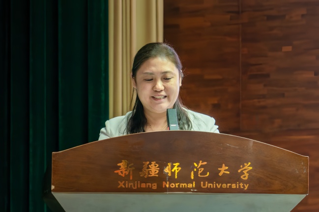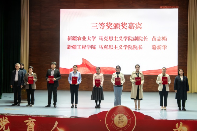 颁奖环节结束后,特等奖获奖教师代表王薇上台发言。她表示,此次活动充分展现了思政课教师的精神风貌,提升了思政课的思想性和理论性。今后,广大思政课教师将在课堂中继续保持积极向上的态度,当好立德树人的主力军,为培养爱国爱疆、担当奉献的社会主义建设者和接班人做出更多贡献。