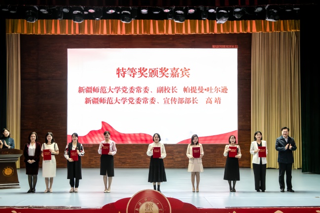 帕提曼•吐尔逊为颁奖仪式致辞。她指出,永利官网作为本次活动的承办单位,长期聚焦立德树人根本任务,深化科学研究、优化师资队伍、强化重点马院建设的政策支撑,将学科建设与改革创新和人才培养结合起来,用高水平研究成果服务思政课发展,之后也将继续秉持初心,为思政课的创新提供扎实理论支撑。