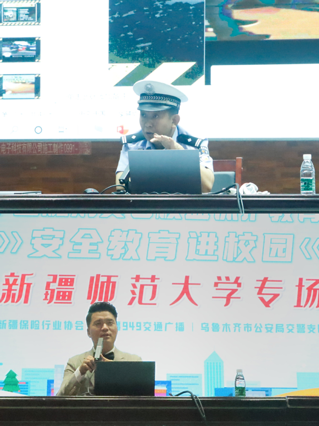 活动还邀请到了乌鲁木齐市公安局交警支队民警和新疆广播电视台FM94.9交通广播主持人走进校园,开展了交通安全教育进校园活动,通过以案说法、情景模拟、知识问答的方式普及交通安全,进一步增强了同学们的交通安全意识和法治观念,学会自我保护,安全出行,珍爱生命。