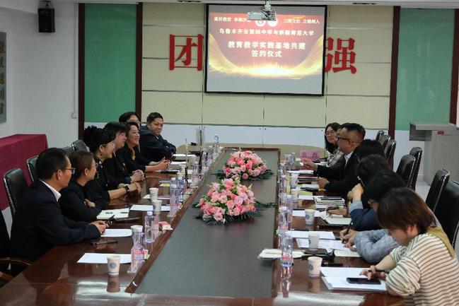 研究生处处长周珊与乌鲁木齐市第四中学党总支书记付传姝签订研究生产学研实践基地协议