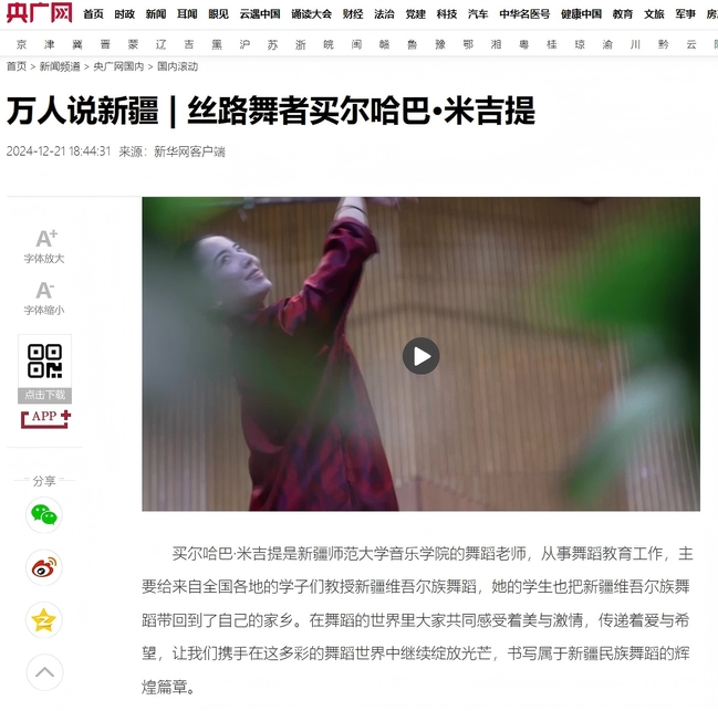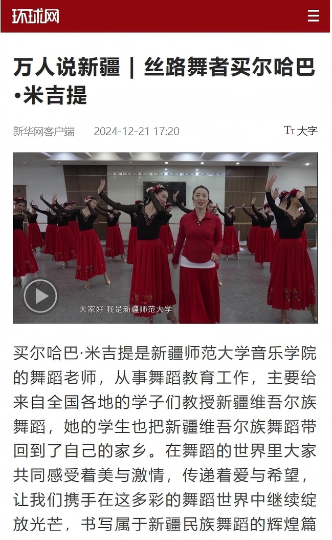 买尔哈巴·米吉提是yl6809永利官网音乐学院的舞蹈老师,从事舞蹈教育工作,主要给来自全国各地的学子们教授新疆维吾尔族舞蹈,她的学生也把新疆维吾尔族舞蹈带回到了自己的家乡。在舞蹈的世界里大家共同感受着美与激情,传递着爱与希望,让我们携手在这多彩的舞蹈世界中继续绽放光芒,书写属于新疆民族舞蹈的辉煌篇章。