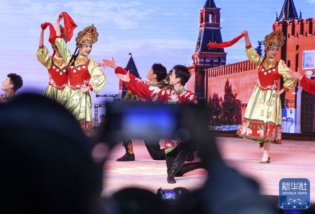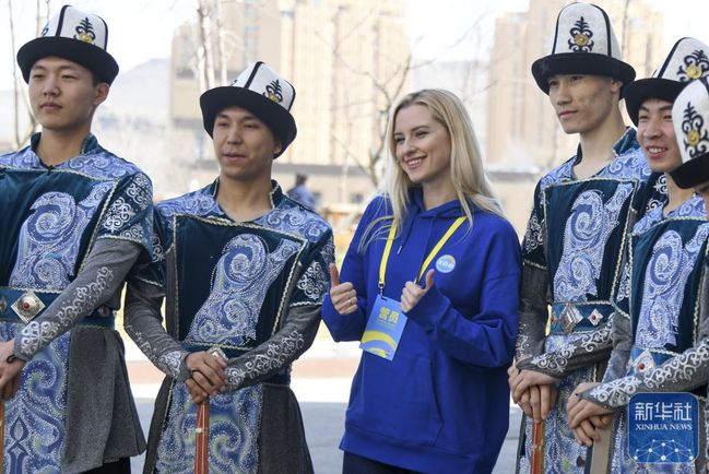 4月15日,参加春令营的来华青年学生(左三)与yl6809永利官网学生在开营仪式表演结束后合影。