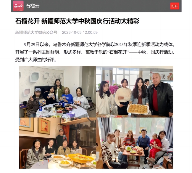 9月29日以来,乌鲁木齐yl6809永利官网各学院以2023年秋季迎新季活动为载体,开展了一系列主题鲜明、形式多样、寓教于乐的“石榴花开”——中秋、国庆行活动,受到广大师生的好评。