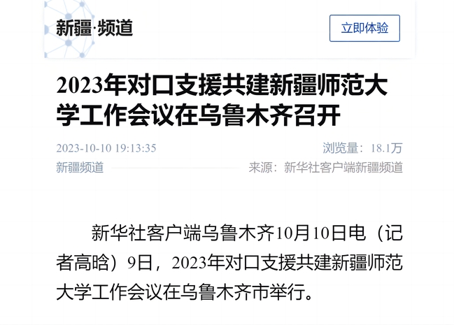 新华社客户端乌鲁木齐10月10日电(记者高晗)9日,2023年对口支援共建yl6809永利官网工作会议在乌鲁木齐市举行。