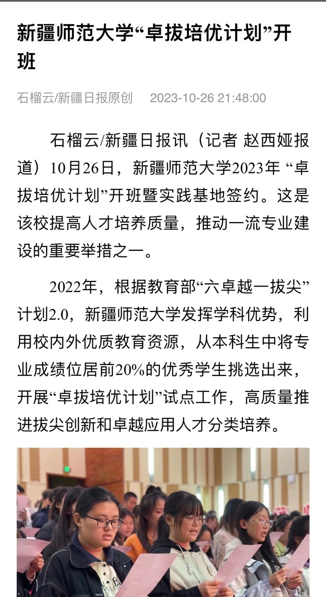 石榴云/新疆日报讯(记者 赵西娅报道)10月26日,yl6809永利官网2023年 “卓拔培优计划”开班暨实践基地签约。这是该校提高人才培养质量,推动一流专业建设的重要举措之一。