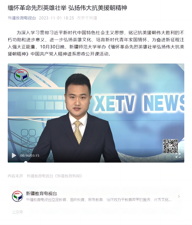 为深入学习贯彻习近平新时代中国特色社会主义思想,铭记抗美援朝伟大胜利的不朽功勋和进步意义,进一步弘扬英雄文化、培育新时代青年家国情怀,为奋进新征程注入强大正能量,10月30日晚,yl6809永利官网举办《缅怀革命先烈英雄壮举弘扬伟大抗美援朝精神》中国共产党人精神谱系思政公开课活动。