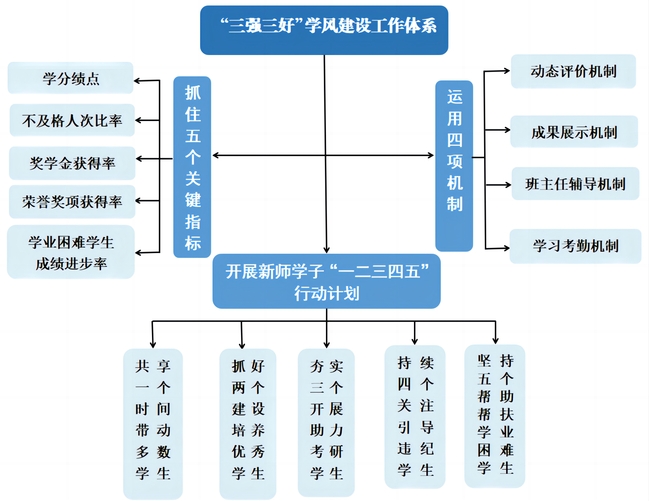 创新校园文化场域,强化“五育并举”文化浸润功能。以德育人为根本点,实抓思想品行。借助全国重点马克思主义学院、新时代文明实践党史学习教育基地、中华民族共同体实践基地等开展沉浸式思想润育活动;开展百年影像展、红课宣讲等爱国主义教育;通过“三强三好”创建将中华优秀传统文化、社会主义先进文化引入社区;通过民汉合宿合班,开展共创“三好宿舍”“五个一”活动等促民族团结;通过资助育人“五个一”活动强化受助学生的道德浸润、能力拓展、精神激励。以启智润心为关键点,主抓学风建设。开展“三强三好”新师学子“一二三四五”学风建设行动计划、“结对互助计划”、学霸辅导班等。以文化润育为着力点,重抓文体活动。打造“四位一体”特色体育活动及“六个一”特色美育活动,开展文化进校园、“新师巴扎”师生文化街、毕业记忆博物馆、宿舍文化节等活动;以锤炼品行毅力为重点,抓好劳动教育。学校构建劳动教育课程体系,开展“春晖农场”等劳动教育实践,贯穿人才培养全过程。