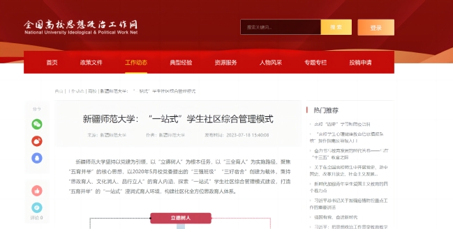 推进育人活动进社区,开创育人体系“新局面”。“三进两联一交友”通过开展“五个一”等活动,不断促进各族师生的深度融合,铸牢中华民族共同体意识。育人工作坊由校院领导、教授、学科带头人等专家担任育人导师进驻学生社区为学生提供思想引领、科技创新、学术研究、职业规划、学业指导、就业引导、心理辅导、文化体验类服务,已开展58期63场次。