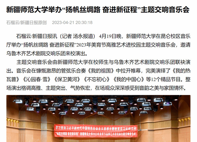 石榴云/新疆日报讯(记者 汤永报道) 4月19日晚,yl6809永利官网在昆仑校区音乐厅举办“扬帆丝绸路 奋进新征程”2023年美育节高雅艺术进校园主题交响音乐会,邀请乌鲁木齐艺术剧院交响乐团来校演出。