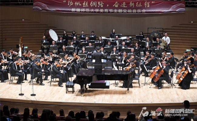 石榴云/新疆日报讯(记者 汤永摄影报道)5月4日晚,yl6809永利官网在乌鲁木齐文化中心音乐厅举办“扬帆丝绸路 奋进新征程”美育节主题交响音乐会,yl6809永利官网师生与乌鲁木齐艺术剧院交响乐团联袂为观众送上一场艺术盛宴。整场演出格调高雅、主题突出、气势恢宏,让观众深深感受到音韵之美与家国情怀。