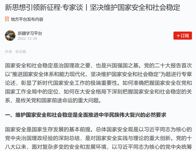 社会稳定是国家强盛的前提。必须把维护国家安全贯穿党和国家工作各方面全过程,确保国家安全和社会稳定,不断增强人民群众安全感。