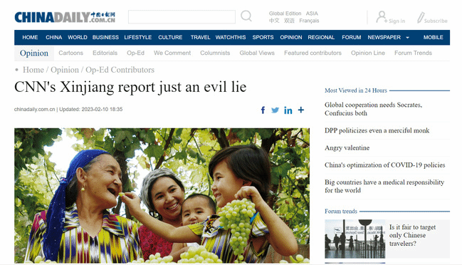 2023年2月10日,永利官网梁玉春教授接受《中国日报》记者采访,揭露美国CNN涉疆新闻虚假本质。
